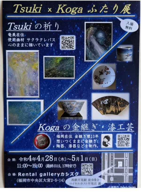 クレパス画の「Tsuki」さんと、金継ぎ・漆工芸の「Koga」さんの合同展示会です。